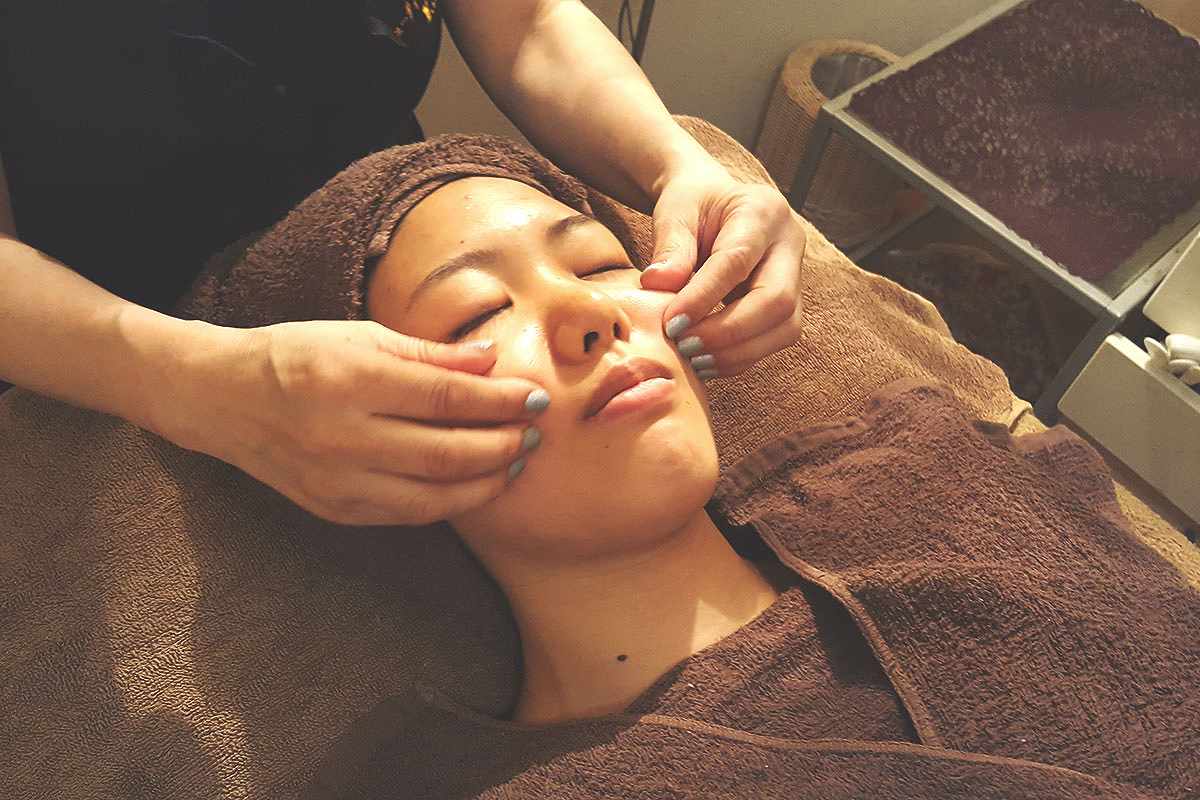 ヘッドスパや耳ほぐしが盛り込まれている癒しのフェイシャルケア。